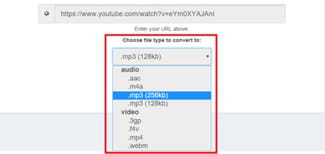 Pilih tipe format yang diinginkan, mp3 misalnya: