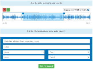 Edit file further untuk membuka editor audio dan kemudian gunakan kontrol slider untuk menyorot bagian file audio yang ingin Anda simpan: